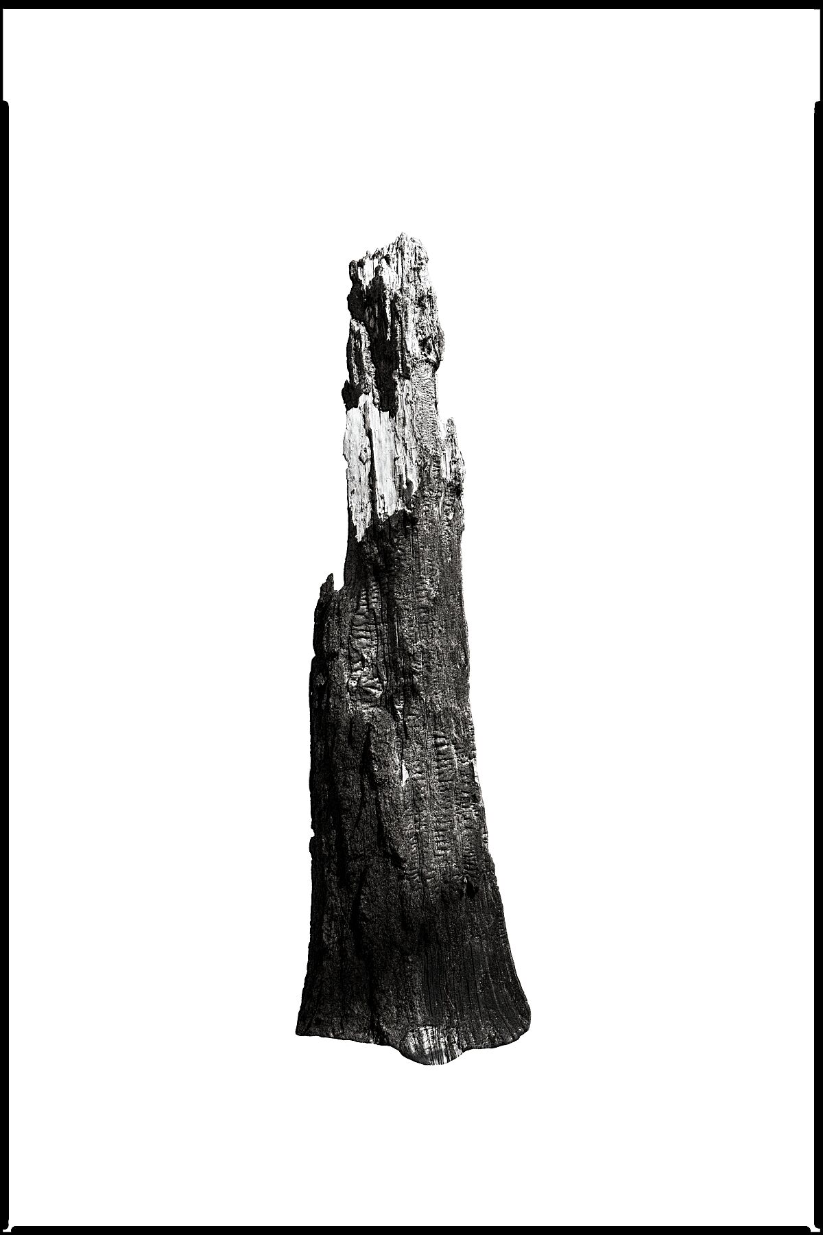 No. 674003: Solid, dark, and heavy, this form anchors the collection with its brooding presence. The rich blacks of the German Etching paper bring out the sorrow in the grain.
